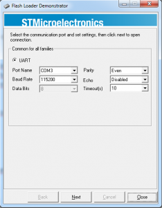 기본적으로는 위의 참조 사이트에 나와있는 방법을 이용하면 Uart 포트로 Flash Loader Demonstrator를 이용하여 bin 파일을 다운로드 할 수 있다.