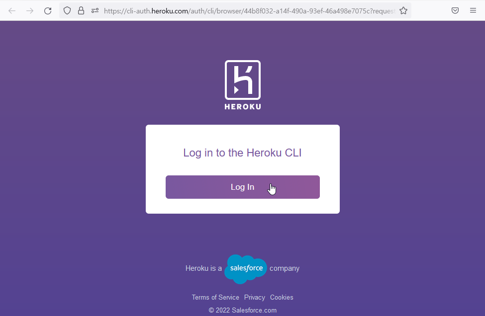 아래의 명령어를 실행하고 아무 키를 한 번 누르면 웹 브라우저가 열리면서 heroku에 로그인을 요청한다.